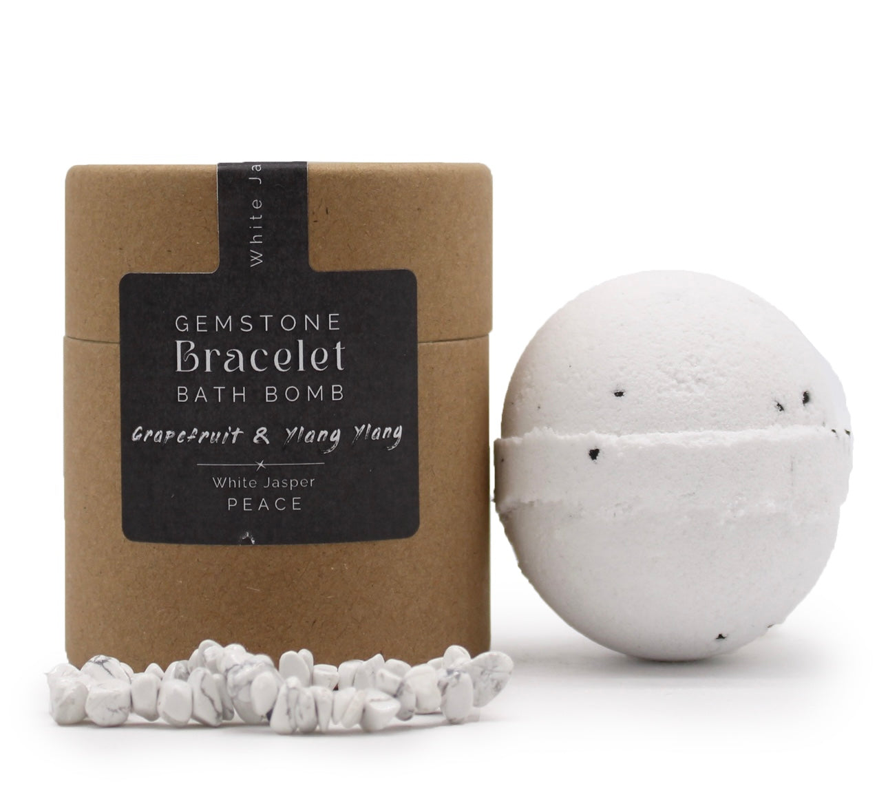 Bomba de baño de Pomelo e Ylang Ylang/pulsera de jaspe blanco. PAZ.