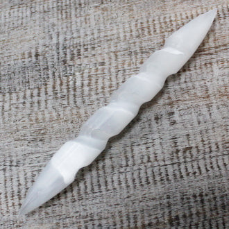 Varita Espiral de Selenita - 16 cm (Ambos extremos punta)